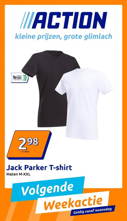 Deze tekst wordt automatisch gegenereerd, dus deze kan fouten bevatten.ACTION kleine prijzen, grote glimlach bi) 298 Jack Parker T-shirt Maten M-XXL Volgende