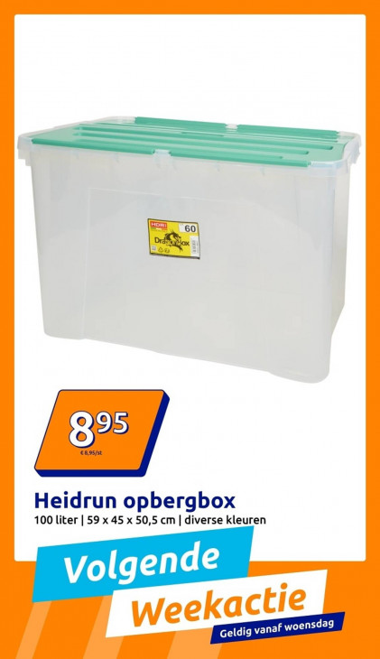 Deze tekst wordt automatisch gegenereerd, dus deze kan fouten bevatten.nn nn Heidrun opbergbox 100 liter | 59 x 45 x 50,5 cm | diverse kleuren u