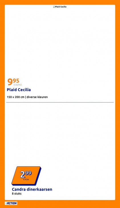 Deze tekst wordt automatisch gegenereerd, dus deze kan fouten bevatten.„Plaid Cecilia 92. Plaid Cecilia 150 x 200 cm | diverse kleuren Candra dinerkaarsen 8 stuks ACTION